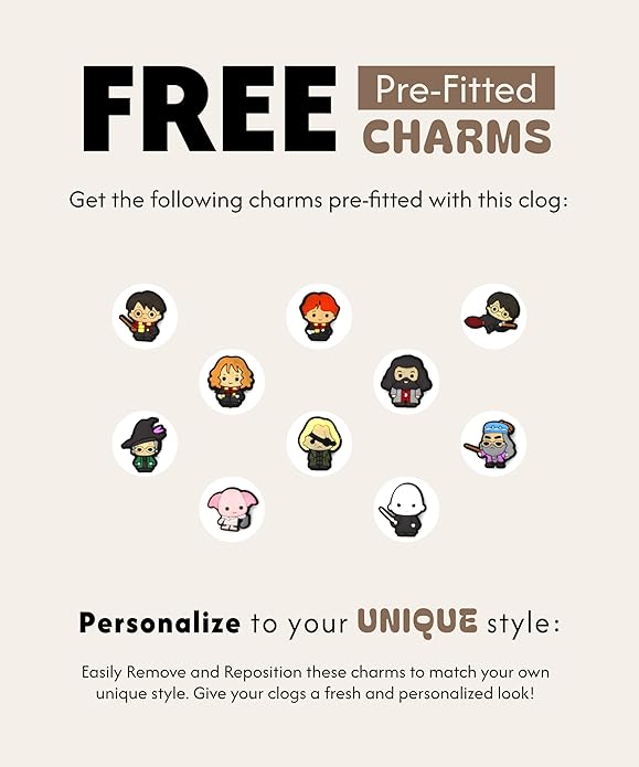 SVAAR x Harry Potter Men's Magical Clogs with 10 Authentic Harry Potter Charms Included and Adjustable Back Strap